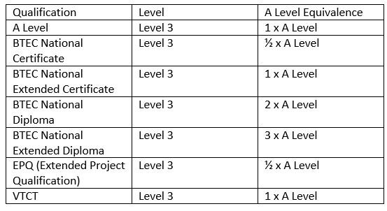 *Hairdressing is taken as an equivalent of two qualifications. Sports BTEC can be taken as an equivalent of one, two or three qualifications.